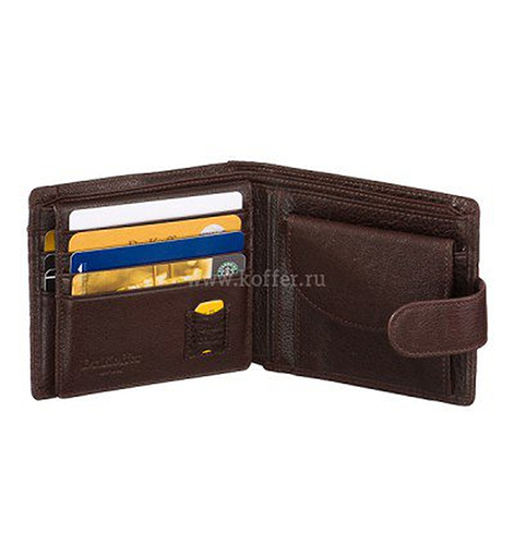 Оригинальное портмоне – для любителей обладать тем, чего нет у других. Второе такое не увидишь в чьих-нибудь руках или, по крайней мере, это маловероятно. Оригинальность модели в необычном и стильном решении: на лицевой части устроен открытый карман, в котором размещается вынимающийся блок для пластиковых карточек. Помимо этого внутри портмоне еще 8 посадочных мест под карты, не считая кармана с прозрачным окошком и четырех потайных. Карман для мелочи на кнопке, для купюр два отделения. Подарочная коробка прилагается.